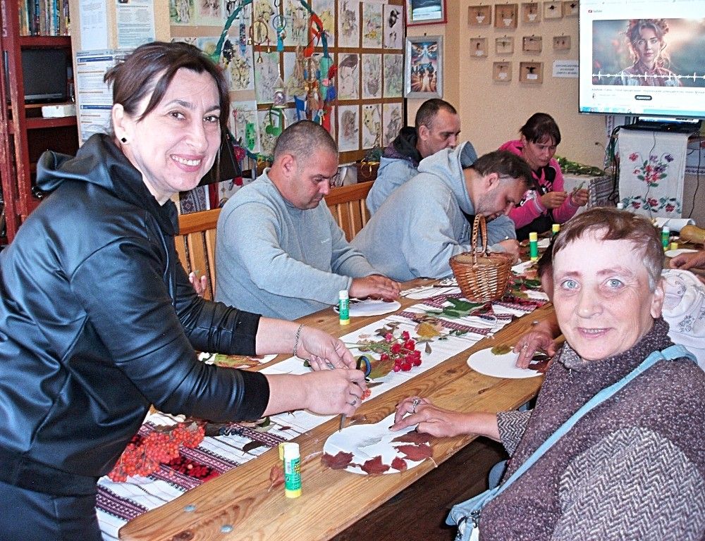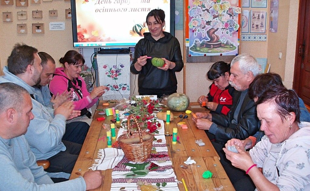 Творча частина подарувала нові враження: учасники виготовляли яскраві гірські пейзажі в техніці аплікації з листя, а також створювали маленькі гарбузики з повітряного пластиліну, які згодом стали оздобами для справжніх гарбузів. Їх декорували квітами, ягодами калини й горобини, осіннім листям та яскравими квітами.