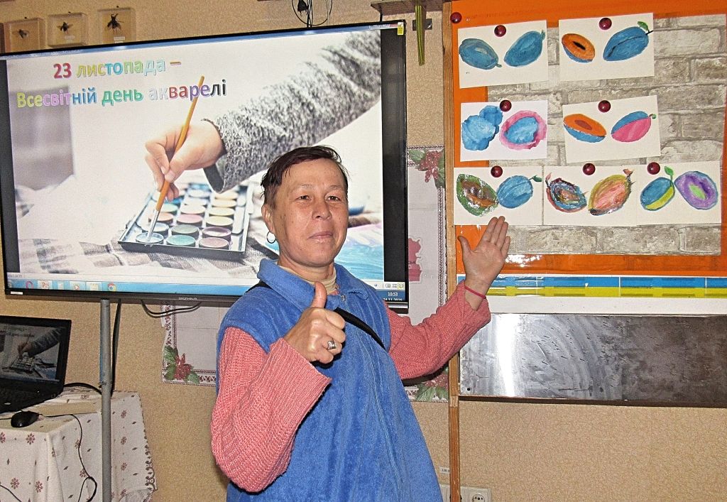 У Ліщинівському будинку-інтернаті відбулася тепла й натхненна творча зустріч, присвячена Всесвітньому дню акварелі. Захід розпочався з огляду презентації, яка познайомила учасників із цим особливим видом мистецтва: його історією, основними техніками та митцями, що стояли біля витоків роботи з акварельними фарбами. Далі присутні мали змогу переглянути добірку робіт сучасних українських мисткинь, які створюють акварельні картини в різних жанрах — від пейзажів та флористичних мотивів до ніжних ілюстрацій. Це надихнуло на власні творчі спроби. У практичній частині учасники випробували себе в трьох видах акварельних технік та створили власну художню листівку. На акварельному папері кожен намалював осінній фрукт — сливу, що символізує внутрішню цілісність, мудрість, витримку та солодкі плоди власних зусиль. Тепер ці яскраві малюнки можуть стати прикрасою кімнати або ж теплим подарунком для друга. Атмосфера зустрічі була затишною, творчою та сповненою гарного настрою. Акварельні фарби об’єднали всіх у процесі, де кожен міг відчути радість творення та власний маленький мистецький успіх.