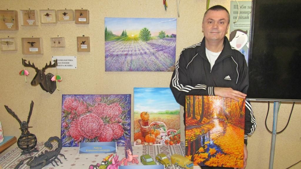 Клименко Олександр показав глибину свого таланту у роботах у техніці живопису акрилом. Його полотна відзначаються насиченими кольорами та експресією.