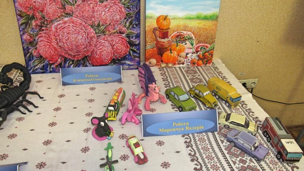 Яскін Дмитро долучився до експозиції з власними зразками 3-Д моделювання , демонструючи сучасний підхід до творчості.